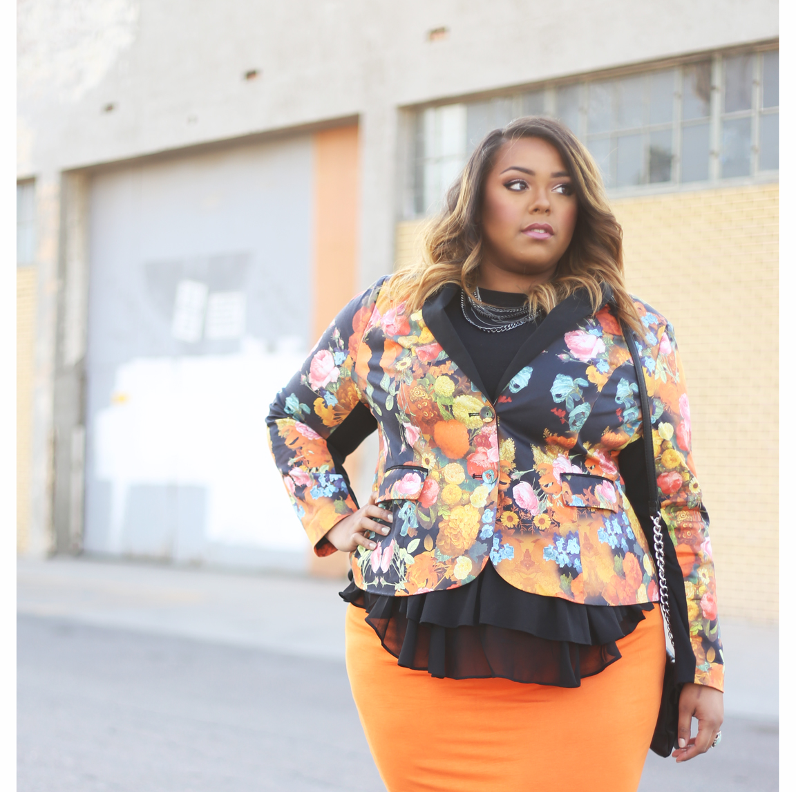 I styled the second look for Nicole. I’ve had this floral blazer [similar http://goo.gl/qUKOWu] for at least a year and when I realized the color was a perfect match, I just had to see how it looked with this skirt. This outfit is perfect for casual friday, if your office is color friendly. Otherwise, it would be perfect for a chilly spring evening when you want to show your girlfriends that color is your real BFF.