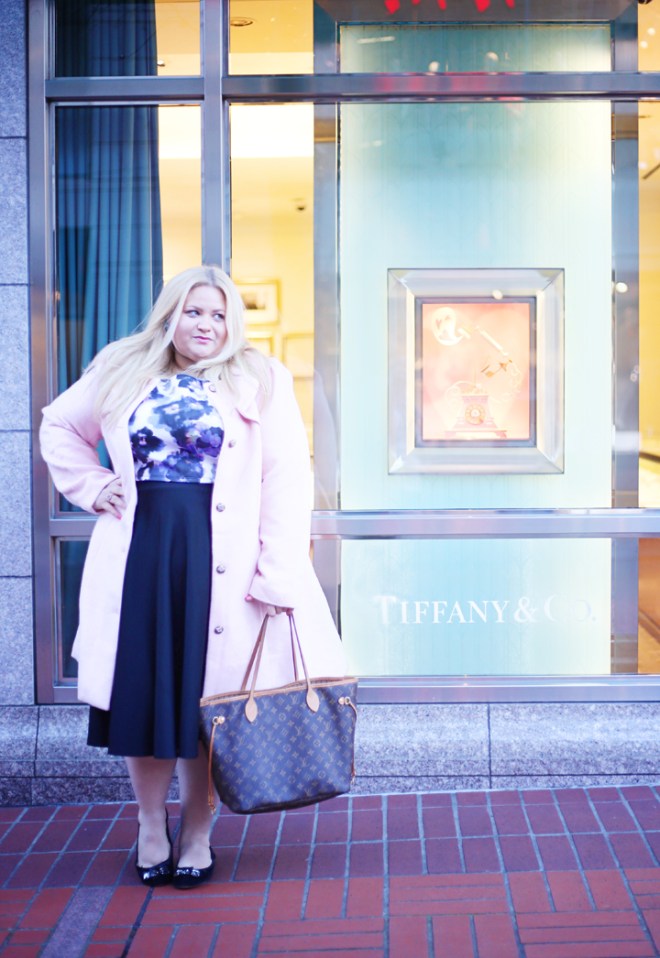 For a day of shopping in Portlandia, I needed an outfit that was both comfortable and chic. This coat looks fantastic over a circle skirt, so naturally – I popped on my favorite ASOS midi skirt in luscious scuba [sold out, similar], my most feminine crop top [sold out; next best thing here], jewelry and my go to tote [more affordable option here].