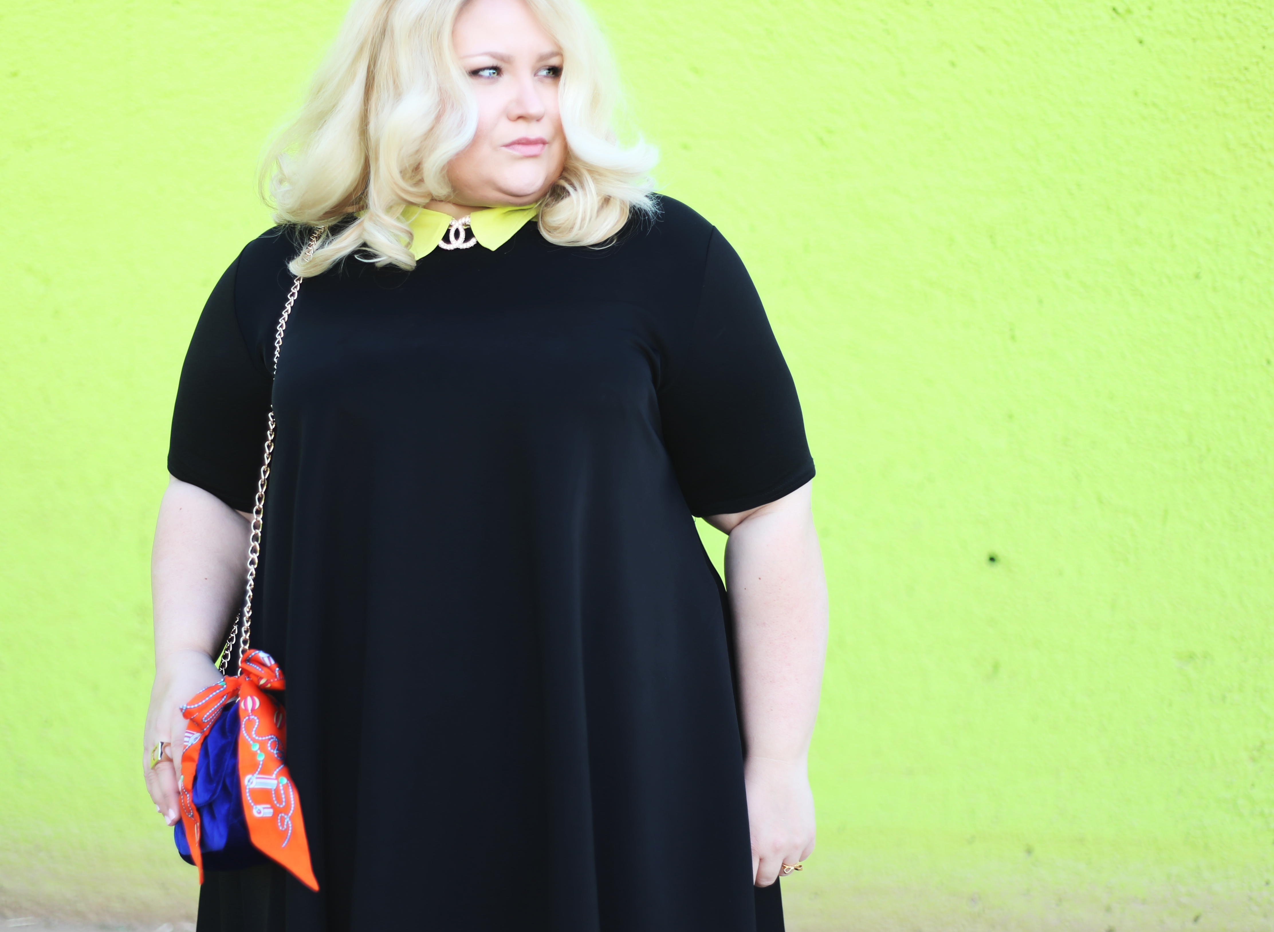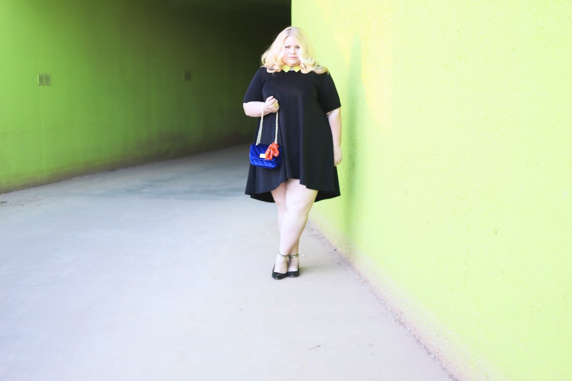 Wearing a swing dress can be intimidating because they don’t hug your curves and you might be worried that they will make you look bigger – and lets be honest, most of us don’t have that goal in mind when choosing a LBD. Some swing dresses are made of a thin material that can cling to the body which ruins the swing effect when you move. This swing dress [similar], however is d i v i n e. The fabric is a lightweight scuba and it lays beautifully over the body; it doesn’t cling when you move in it either. It has a slight hi-low hem effect which is really nice as a measure of modesty [if you’re into that sort of thing]. You may have seen that I also bought it in pink. This dress looks great on as is but I thought it would be fun to show another way to wear it.