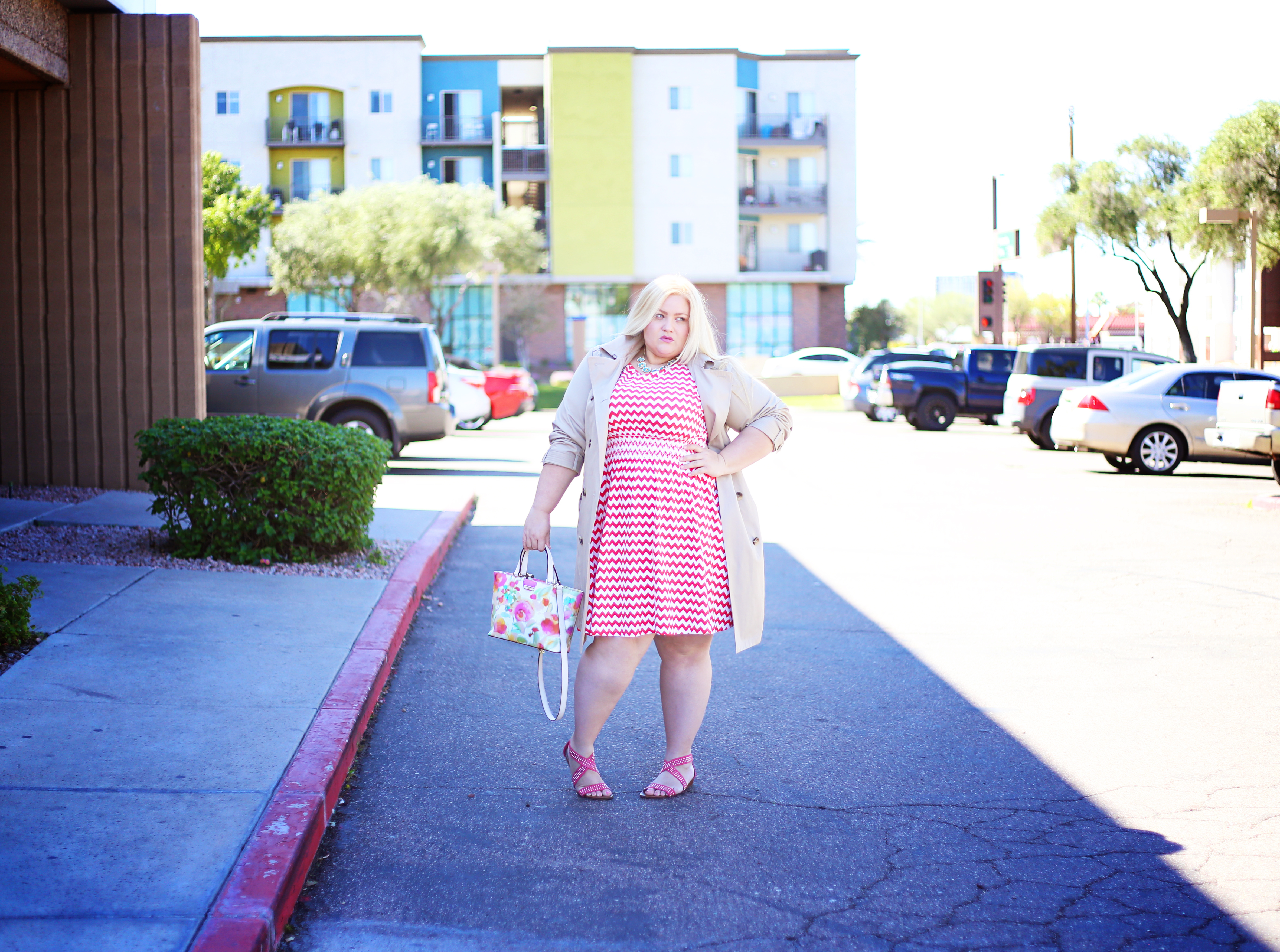 As we left the restaurant, I begged her to snap this photo so I could show you the gorgeous trench I wore on top of this dress. This trench coat is from London Fog – in a size 2x and it fits like an absolute dream.