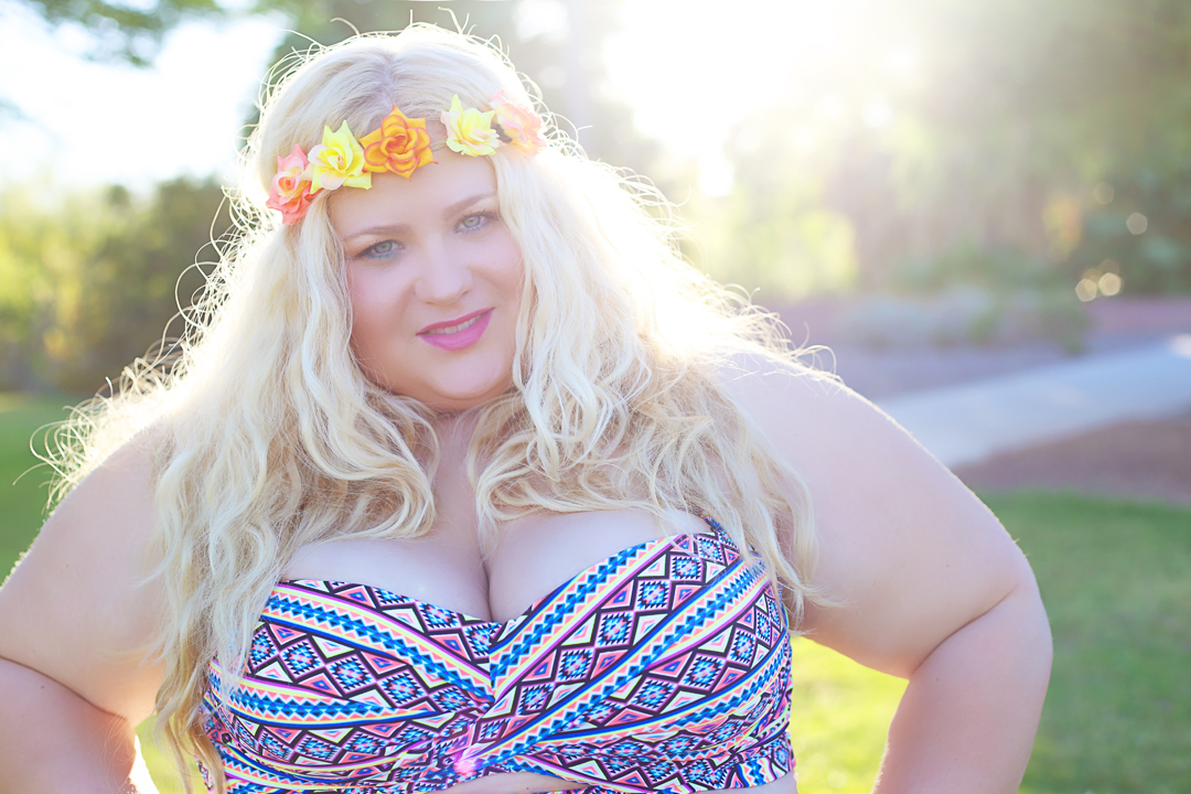 This outfit is for the teenage me, its for the spirit of summer and for the freedom you feel when you dance. When I was a teenager – they didn’t make bikini tops in my size [then 38 DD, now 42 DD]. So this is the outfit I would have worn. Now, since I’m not much into festivals, I wore it to a poolside bbq.