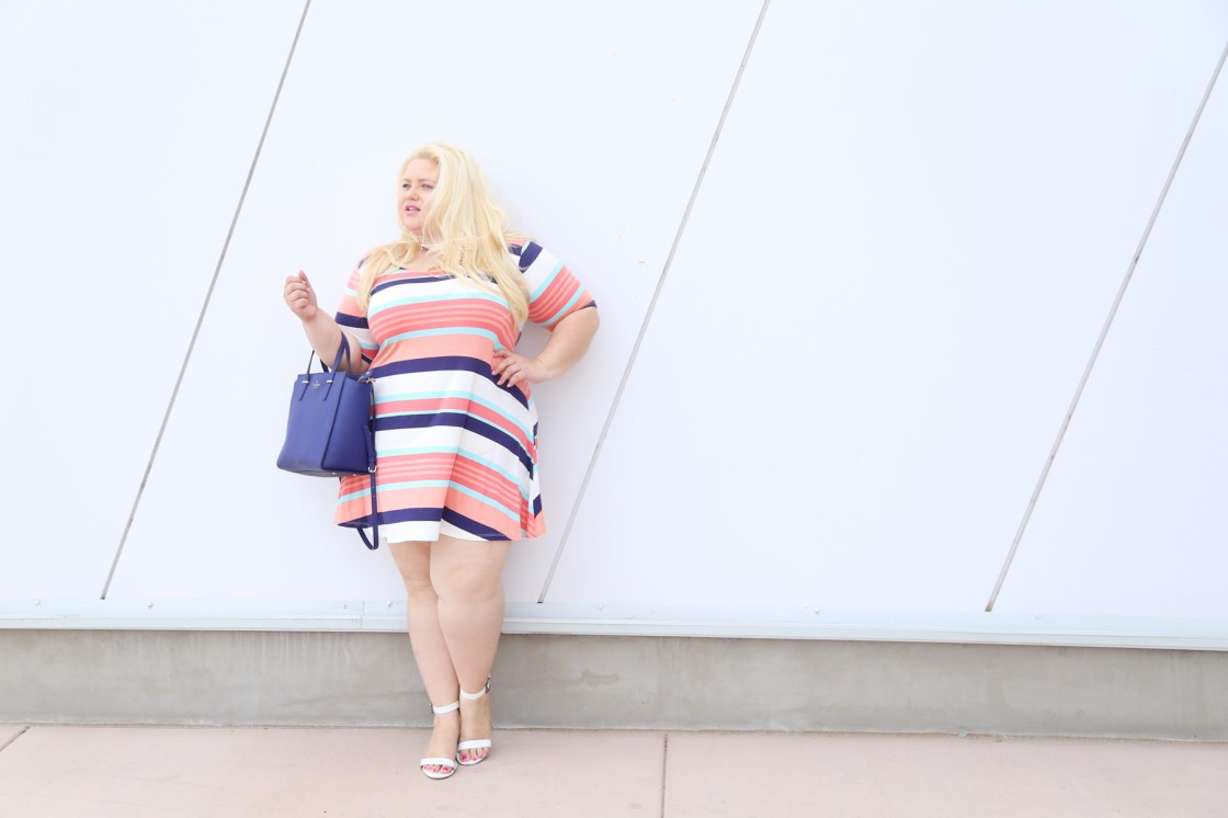 This dress is made from a stretchy and soft fabric that swings when you move. I’m wearing the 3x and it fits like a dream. I paired it with a very cute backpack and my go to wedges.