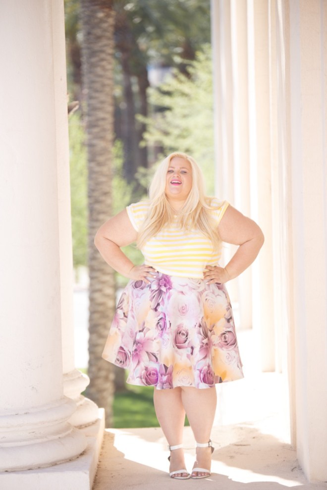 2. Personality is everything, no wait, thats fit. Fit is everything! Nothing makes me feel more uncomfortable than an ill fitting outfit. This skirt [2x] fits like a dream and is made of a stretchy scuba-like material. The t-shirt is a straight size large [cotton, some stretch]