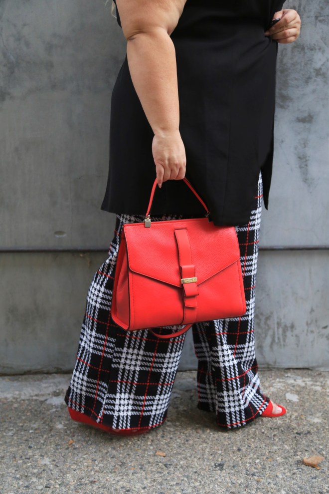 I’d be lying if I said I wasn’t a little unsure of these trousers before trying them on. Obviously they’re cool but I wasn’t sure if I would like how they’d look on me. As I put them on and stood staring at my reflection in the mirror, I was really surprised at how well they fit. I think fit has to be key when wearing a plaid trouser – I’ve tried this look before and hated how the slacks bunched up at the waist. These are cut generously and made of a stretch fabric – so obviously that’s a win. I’m wearing the 3x, over my fav high waist undergarments and they’ve been hemmed. [links below]