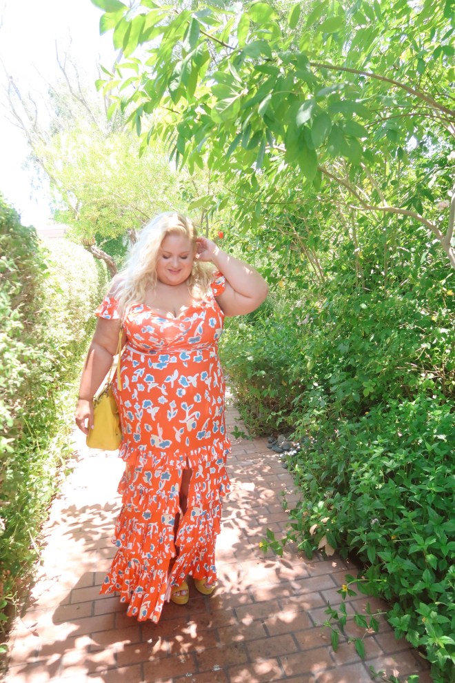 I’m wearing a sz 3 on top and 2 on bottom which doesn’t fit quite as well as I’d like. The fabric stretches, so a 1x would have fit me better in the skirt and a 2x would be better for the top. Links below.