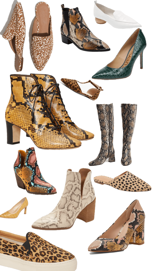 - The killer snake print bootie. This sharp toe will look amazing with browns and soft pinks, whites and blacks. Wear it to the office on casual Friday.
