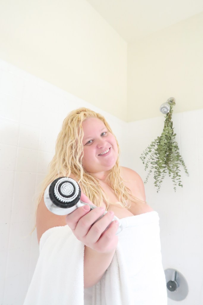 Step 3 Part 2: I really enjoy using this cleansing brush because it comes with two heads: one for your body and one for your face. I use the brush on my body daily and I love how it leaves my skin feeling very clean and primed for a body oil.