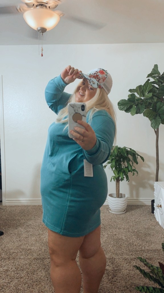 Do not tell yourself that there is anything wrong with you because the outfit didn’t work out. I can’t tell you how many times I’ve heard friends curse themselves out for not fitting into something. For me, this dress was a bit of a disappointment and I’m not going to keep it. I expected the dress to be roomy and comfortable and it isn’t. It’s about a size too small and the fabric isn’t a luxurious soft and stretchy sweatshirt fabric I’d expect from Nike.