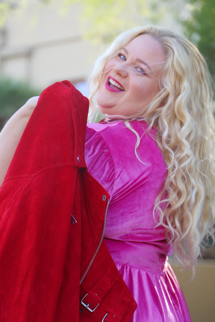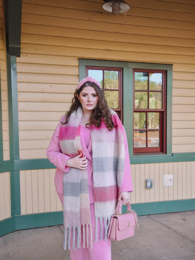 Today we are each bringing you two gorgeous fall looks styling pink things we love. For my first look, I took the challenge of styling a dress that most people would wear for an evening look and I popped a scarf on it to turn it into a cute daytime look – make sure you check out our reel on IG to see how Nataldee also went from Night to Day!