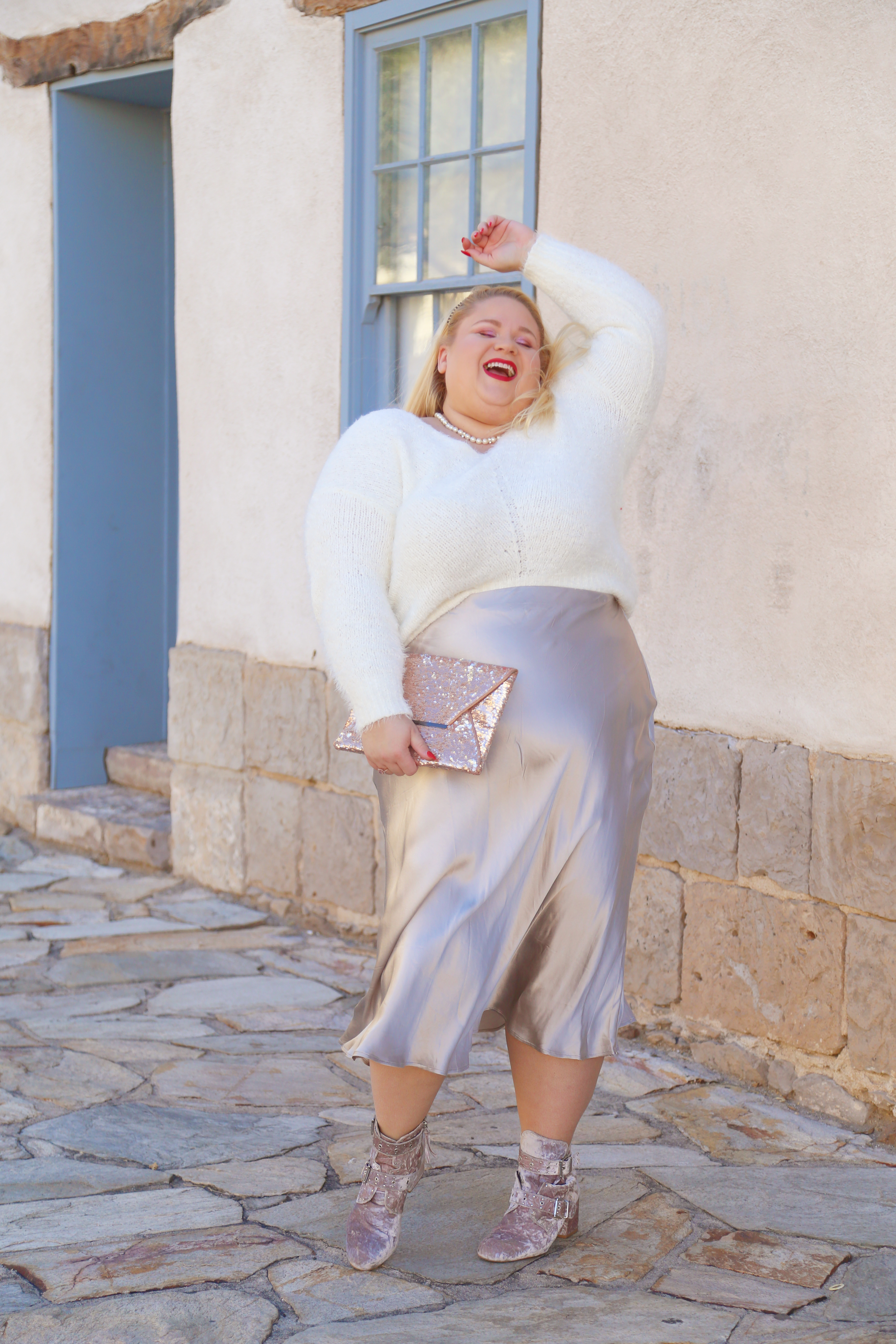 I found this skirt for under $30 and I wanted something very pretty wear with it so I chose two very different looks to demonstrate how easy it can be to change up your look and get tons of wear out of one piece this holiday season.