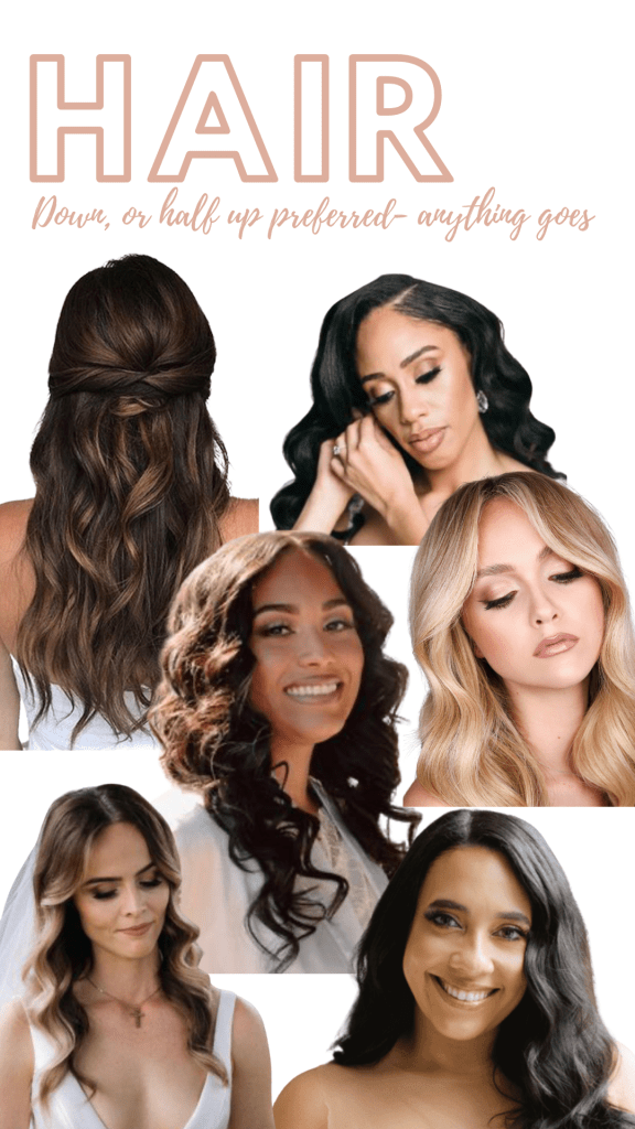 For me, it was very important to make the experience positive for our bridal party, so we elected for minimal events (nothing mandatory outside of the wedding) and I created a planning guide to inspire them and help them find accessories. At the end of the day, I did choose their dresses but left everything else up to them. Here is what my guide looked like (before we changed our theme)